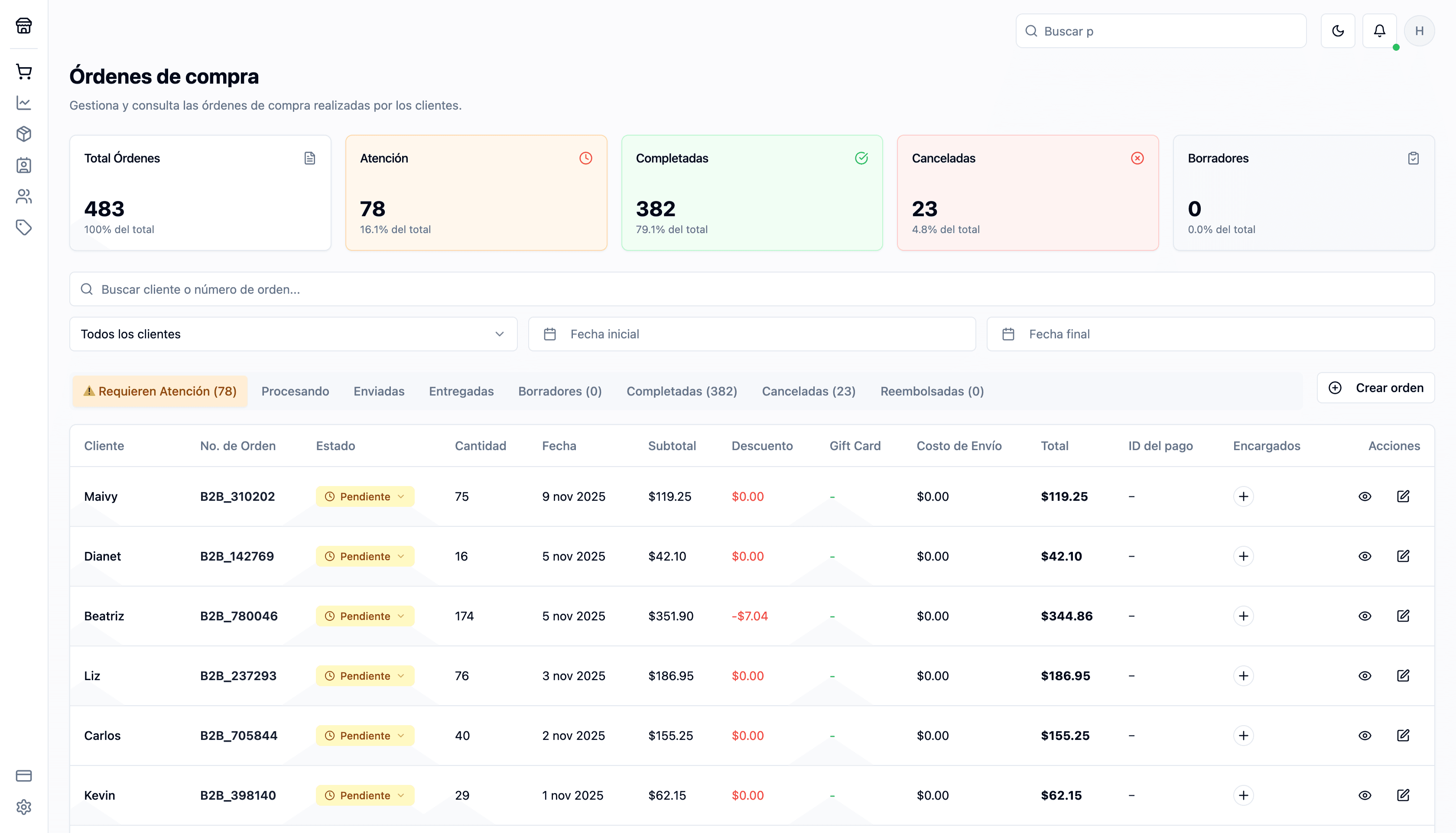 Controla todas tus ventas desde un solo panel. Supervisa estados, asigna pedidos a tu equipo y mantén toda la operación organizada y al día
