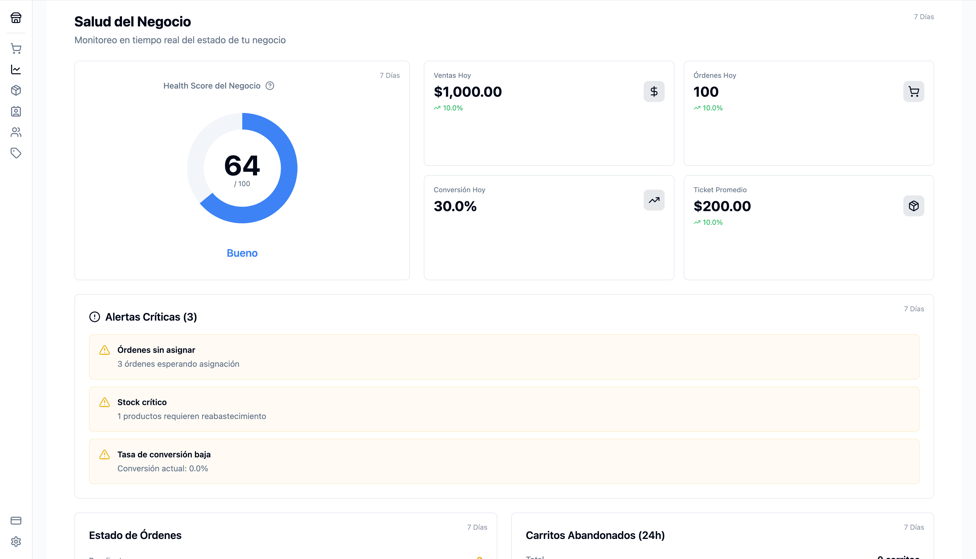 Cymmbo reúne gestión de pedidos, catálogo, analíticas y salud del negocio en una sola plataforma creada para impulsar tu crecimiento