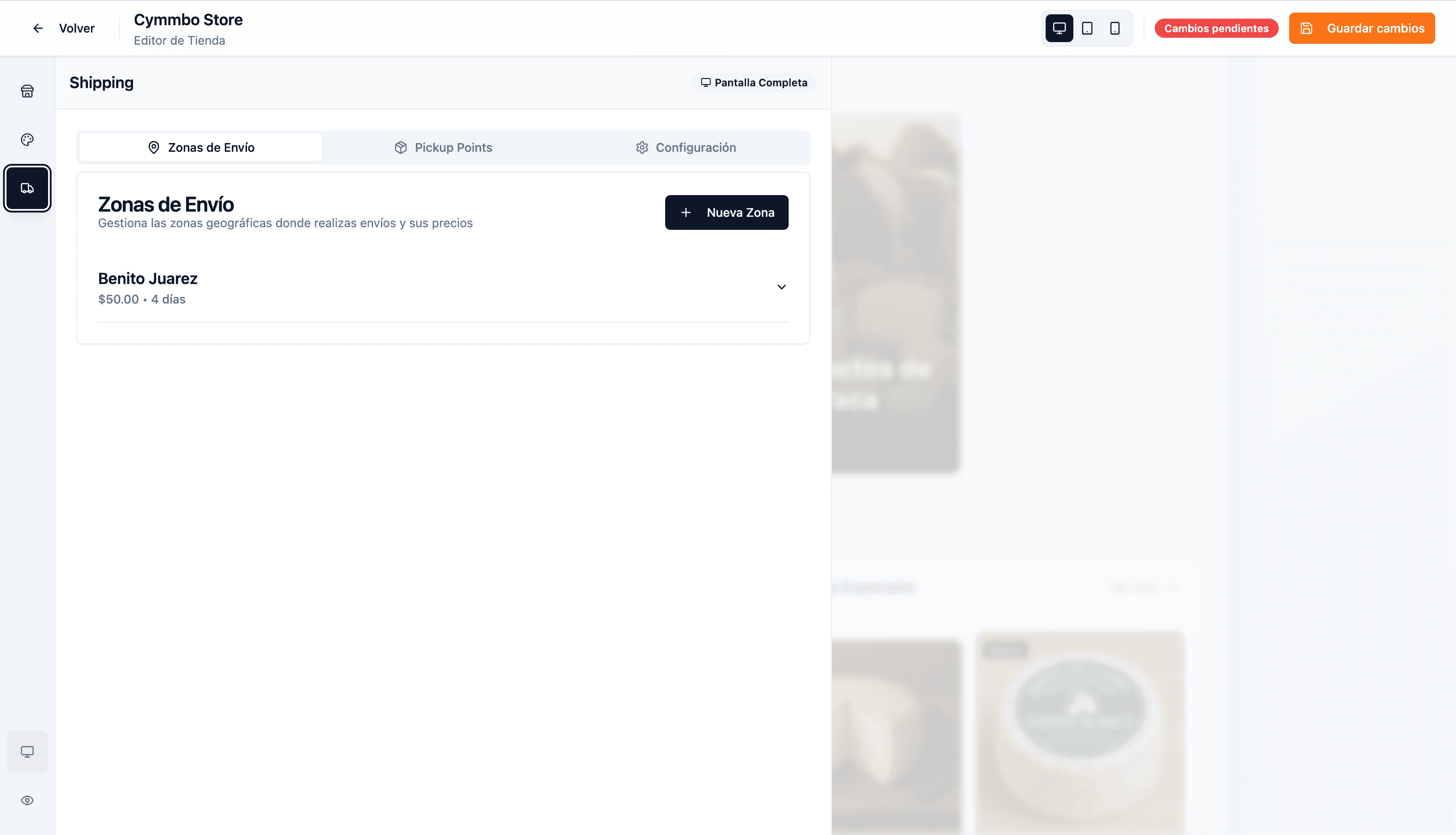 Define zonas, puntos de retiro y reglas de envío con facilidad.
